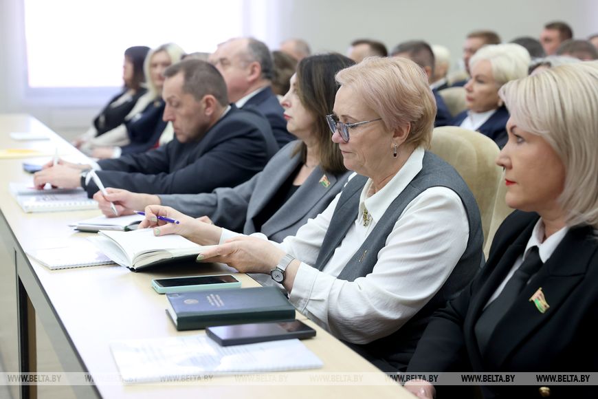 Заместитель председателя Всебелорусского народного собрания остановился на организационной структуре ВНС, его функциях, представительстве, а также основных документах, которые будут утверждены собранием. "Цементирующим ядром являются регионы. Говоря о функции делегатов ВНС, мы обсудили с руководителями делегаций самое активное участие каждого делегата в заседании райгорисполкомов, районных, городских, областных советов депутатов, облисполкомов и владение ситуацией на местах", - отметил Александр Косинец.