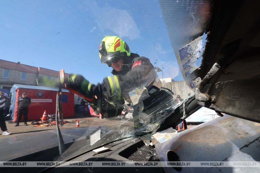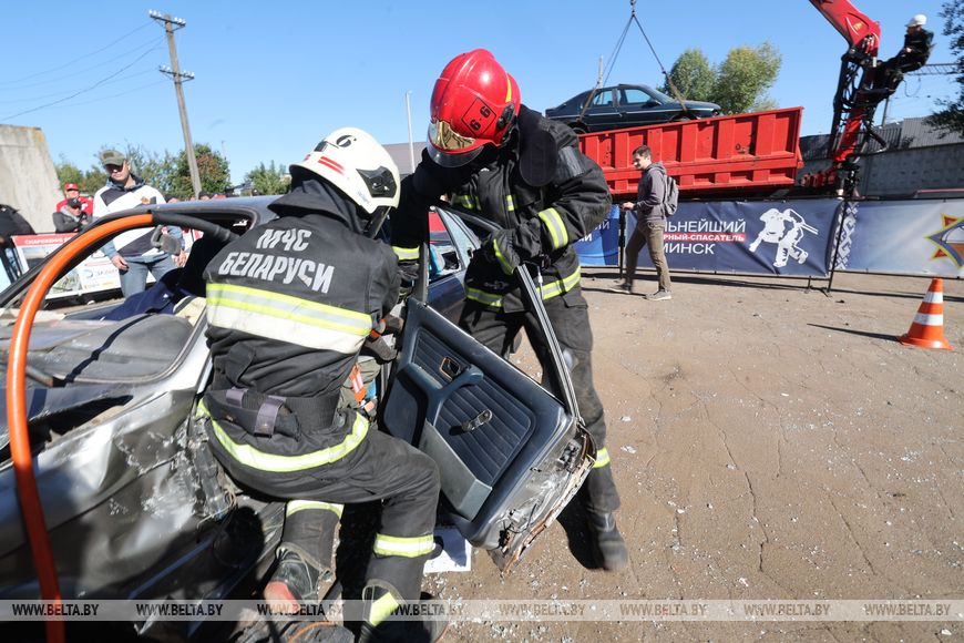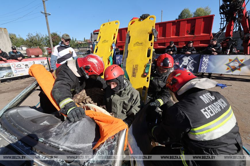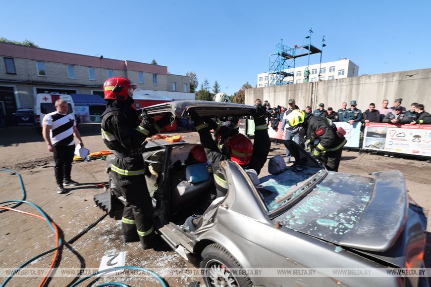 Сделать быстро и безопасно. Соревнования спасателей по ликвидации последствий ДТП проходят в Минске