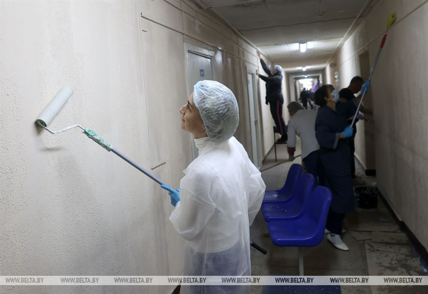Например, в Гомельской городской поликлинике №13 к субботнику подключились около 150 человек. Как рассказала главный врач поликлиники Ольга Мишина, в настоящее время в учреждении проводятся работы по реконструкции пандуса, замене окон. "Проводится и текущий ремонт помещений поликлиники, кабинетов, коридоров. И каждый принимает участие в приведении своего рабочего места в порядок. Коллектив работает сегодня очень активно, все с хорошим настроением", - обратила внимание она.