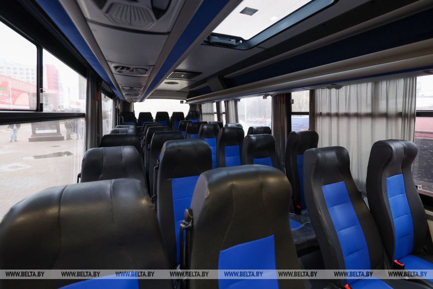 В новом автобусе 29 мест, и перевозка пассажиров стоя в транспортном средстве запрещена.