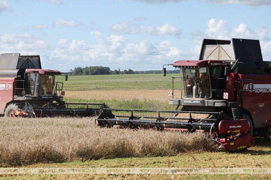У аграриев района пора горячая - они заняты на уборке зерновых, заготовке травяных кормов, в полях проводят каждый погожий час. "Жатва в этом году дается непросто. Погодные условия всех заставили поволноваться. На сегодня в районе убрано 44% площадей, занятых под зерновыми культурами. По району средняя урожайность составляет 39,4 ц/га, это третий показатель по области. На завершающей стадии уборка озимого ячменя, на 74% убран озимый рапс. Убираем озимую пшеницу, в отдельных хозяйствах ее урожайность достигает 89 ц/га. Секрет такого хорошего урожая - в 100-процентном соблюдении агротехнических требований", - отметил Алексей Бухалович.