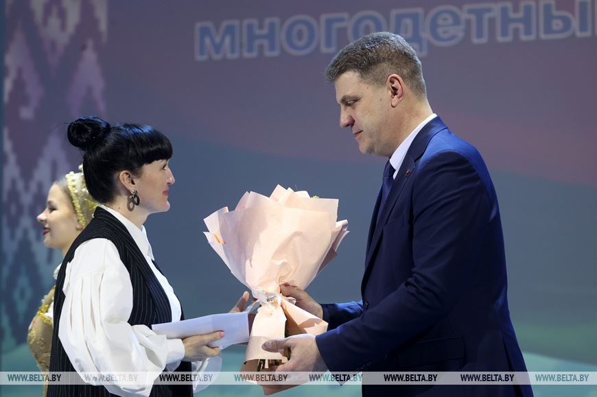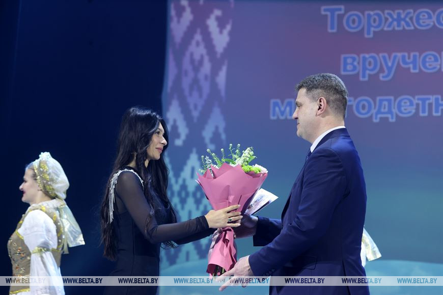 15 марта, Минск /Корр. БЕЛТА/. В День Конституции в Минском городском дворце культуры состоялось вручение орденов Матери, которых в соответствии с указом Президента были удостоены 38 многодетных матерей столицы. 36 из них государственную награду вручил председатель Мингорисполкома Владимир Кухарев. Корреспондент БЕЛТА пообщалась с матерями и узнала, как поддерживать мир и согласие в большой семье и в чем секрет материнского счастья.