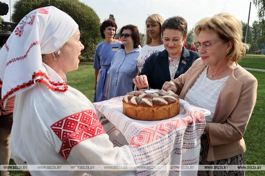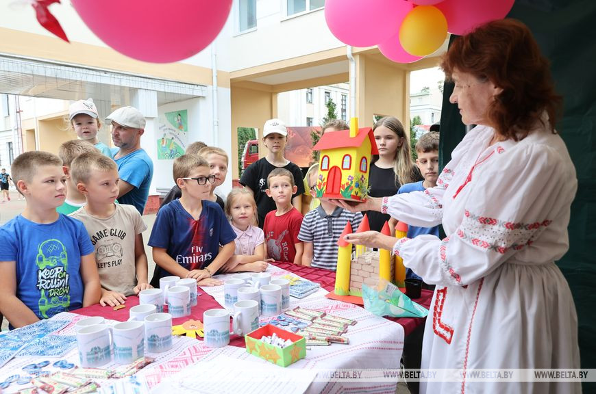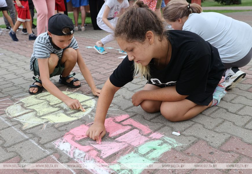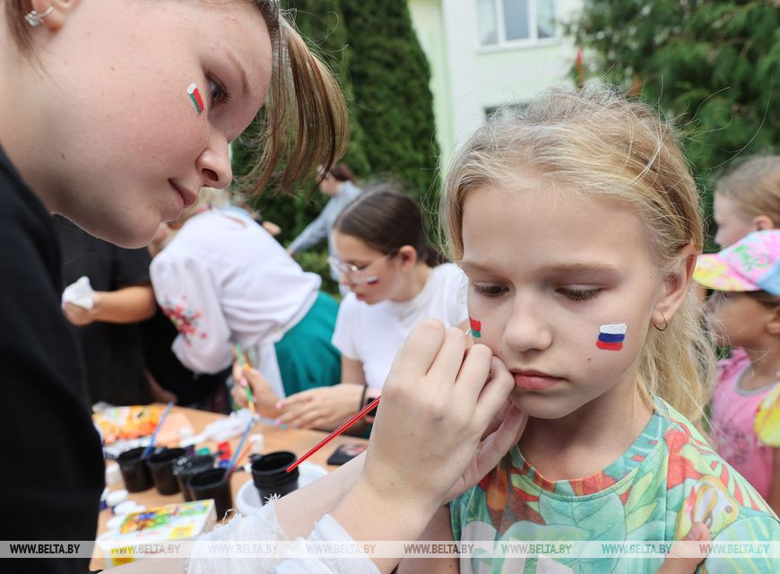 Для ребят в учреждении здравоохранения организовали праздник дружбы и единения. Белорусские и русские народные танцы, национальные костюмы, кухня, песни - отдыхающим подопечным центра нужно было ответить на вопросы викторины, чем отличаются и чем похожи два братских народа в этих и других направлениях. Мальчишки и девчонки исполняли сообща "Калинку", проходили интерактивные площадки квеста "Союзное государство с заботой о детях" - рисовали мелом на асфальте, вслепую ставили с помощью ухвата в печь котелок и выполняли другие задания. И еще у подопечных центра была возможность сделать селфи в кабине настоящего комбайна, пообщаться с одним их передовиков жатвы Лепельского района и узнать из первых уст, как идет сбор урожая этого года.