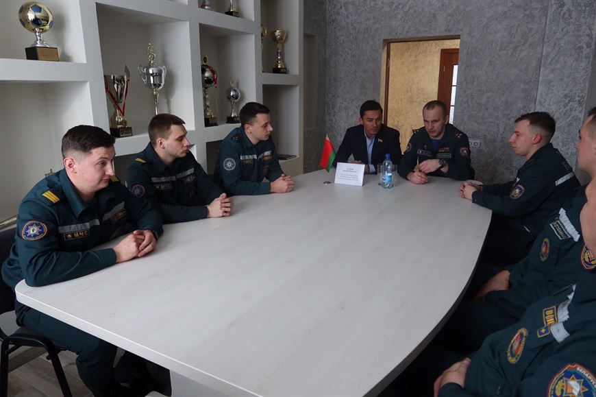 Личный состав отдела обсудил с сенатором вопросы внешней и внутренней политики Беларуси, в том числе важность дополнений и изменений в Конституцию.