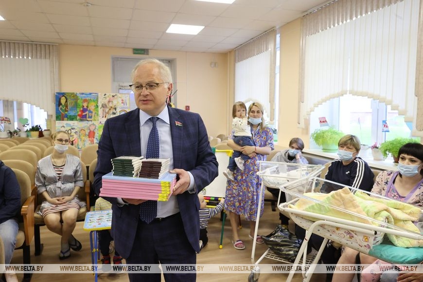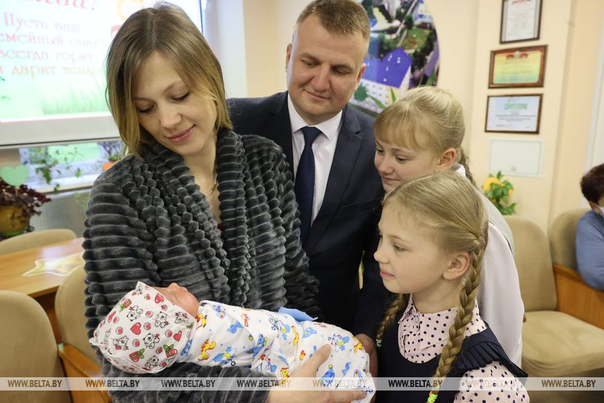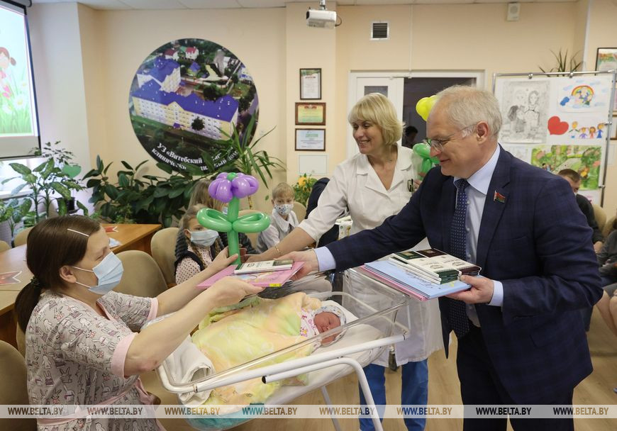 12 мая, Витебск /Алеся Пушнякова - БЕЛТА/. В преддверии Международного дня семьи член Постоянной комиссии Совета Республики по образованию, науке, культуре и социальному развитию, председатель областного комитета профсоюзов Юрий Деркач поздравил восемь семей, в которых недавно родились третьи по счету дети, передает корреспондент БЕЛТА.
