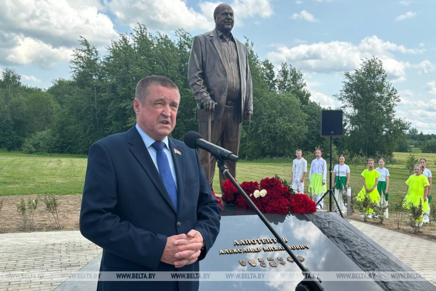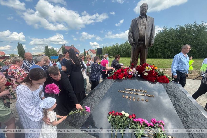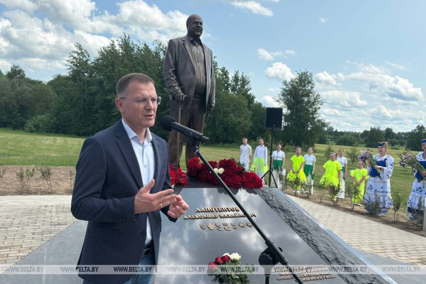 "Кто-то из мудрых сказал: чтобы оставить след на земле, нельзя топтаться на месте, - отметил Андрей Кунцевич. - Александр Михайлович Лапотентов был из числа тех, кто сам не любил топтаться на месте и не давал другим. Бог наделил его неповторимой харизмой и редким управленческим даром - люди действительно шли за ним, верили ему. Именно оказанное ему неподдельное и искреннее людское доверие, когда он, будучи совсем молодым 25-летним пареньком, возглавил колхоз "Родина", для него стало главной жизненной наградой и очень большой ответственностью, которую он пронес через всю жизнь. Каких бы успехов и производственных показателей не достигало его хозяйство, главным своим управленческим достижением он считал коллектив и тех людей, которые работали рядом с ним. Жить с людьми, жить для людей - было его жизненным кредо. Главным героем он всегда считал простого сельчанина, труженика села, и именно это он пытался донести всем - журналистам, писателям, художникам. Он крепко стоял на земле и продолжает это делать уже в виде бронзового памятника".