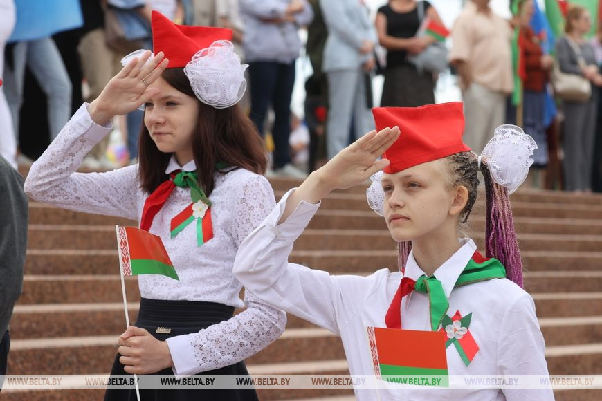 Дети, которые также пришли с родителями на большой праздник, впитывают атмосферу единения. Для семилетней Леры Борисенок это еще один день, когда можно прийти к "Трем штыкам", возложить цветы к монументу, вспомнить те военные рассказы, которые она читала в школе. День Независимости запомнится ей радостными лицами взрослых, яркими флагами и торжественным шествием. Теперь настал черед юной витебчанки и ее сверстников принимать эстафету памяти о подвиге белорусского народа, отвоевавшего свою свободу и право на самоопределение.-0-