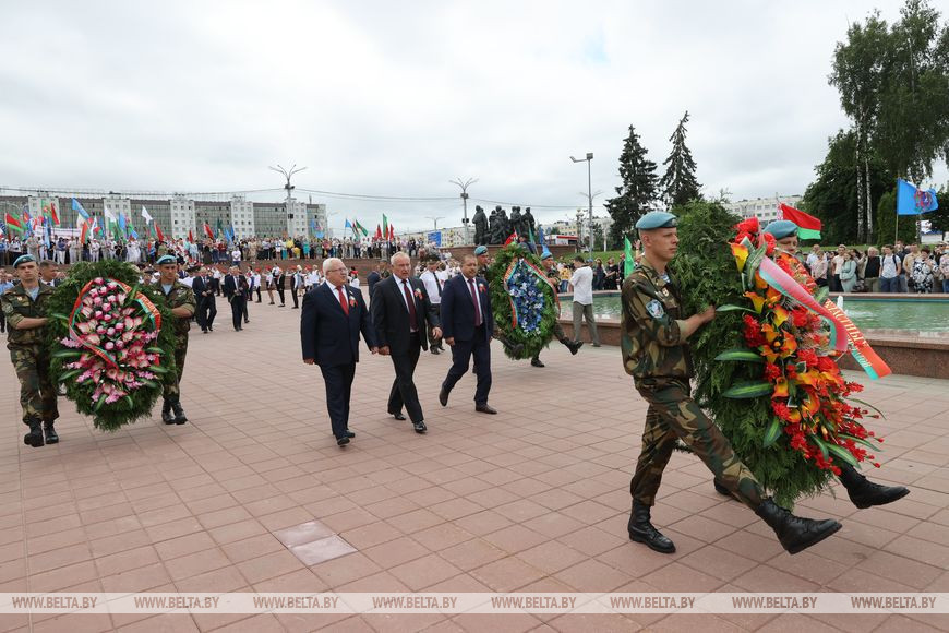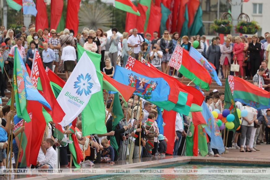 В Витебске празднование Дня Независимости началось с возложения венков и цветов к главному воинскому символу области - мемориальному комплексу в честь советских воинов, партизан и подпольщиков Витебщины. В приветственном слове Николай Шерстнев отметил, что регион значительно пострадал в годы Великой Отечественной войны, потеряв каждого третьего жителя, а в Витебске так и не восстановилась довоенная численность населения. "Наша дорога к самоопределению была долгой и трудной. В прошлом немало было желающих поставить народ на колени, навязать свою волю, лишить нас земли и права на жизнь. Но всегда на их пути вставала сила, имя которой - белорусский характер, отлитый из драгоценного сплава мужества, любви к Отечеству и твердой готовности жертвовать всем во имя свободы. В истории каждой страны есть судьбоносные дни и события, которые вызывают особый патриотический подъем и единение граждан, День Независимости является как раз таким событием", - подчеркнул глава области.