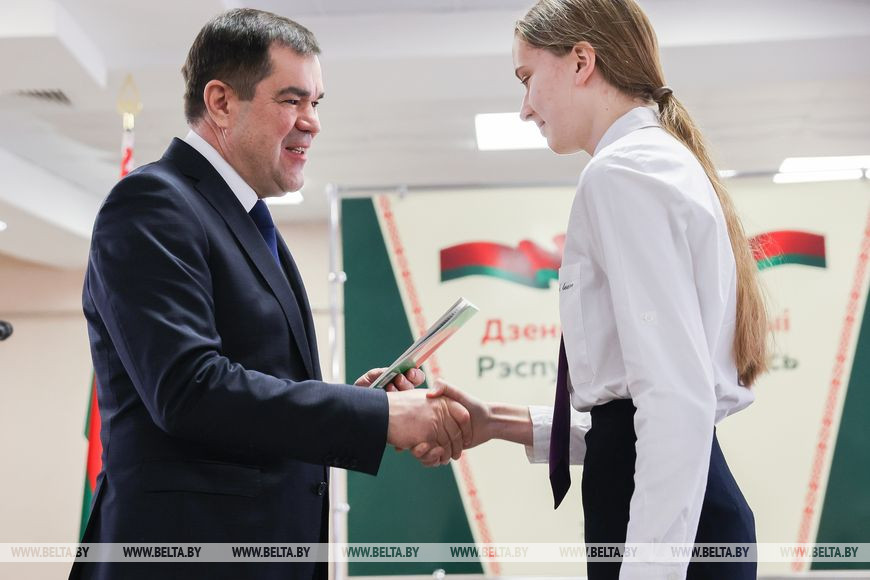 "Сегодня большой праздник, который белорусский народ гордо отмечает более четверти века. Недавно мы предприняли шаги, чтобы наша страна стала уверенней и сильнее - провели референдум, обозначили права и гарантии граждан и государства перед народом. Волнительно присутствовать при вручении паспортов детям, которые становятся полноценными гражданами Республики Беларусь", - сказал Юрий Шулейко.