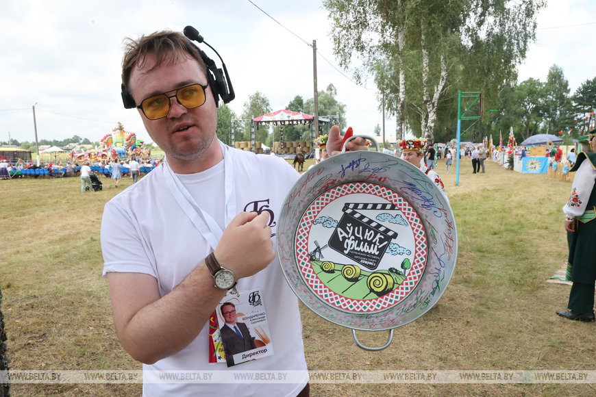 Председатель Калинковичского райисполкома Павел Силивончик тепло приветствовал гостей и участников фестиваля с главной сцены "Автюкивуда" - скромной местной шуточной киноимперии.