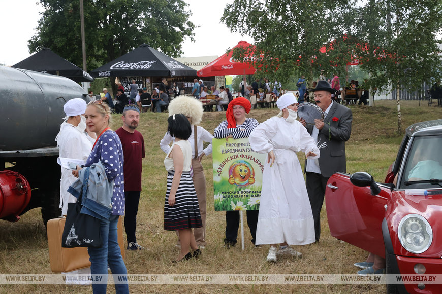 Михаил Иванович привез из Калинковичей всю свою большую родню. И на "таможне" предъявил анекдот про кумовьев. "Один кум спрашивает у другого, любителя выпить: "Если подорожает алкоголь, бросишь пить?" "Нет, не брошу", - отвечает тот. "А если подешевеет?" - задает другой вопрос. "Вот тогда и брошу", - делает душещипательное признание второй. "Почему же?" - уточняет первый. "Да просто сгорю тогда", - сквозь смех делится житель райцентра, торопясь погрузиться в киношное автюковское веселье.А Светлана приехала из Гомеля в Автюки с большой компанией. Женщина искренне рада, что ее анекдот развеселил представителей местной "таможни". "Он очень короткий, но смешной. Слушайте: "Сижу как-то вечером со своим, гляжу, а там мой идет", - заливается смехом она с подругами.