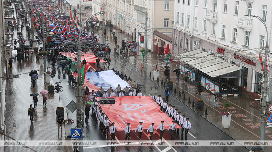 28 июня, Гомель /Корр. БЕЛТА/. Торжественное шествие в Гомеле, который 28 июня стал центром традиционной встречи приграничных областей Беларуси и России "Славянское единство", объединило разные поколения белорусов и россиян, передает корреспондент БЕЛТА.