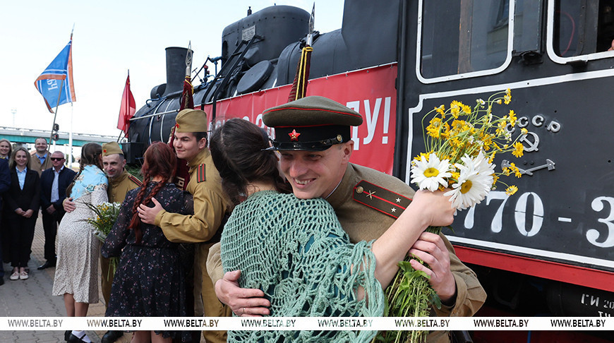 Витебчане сегодня встретили в своем городе "Поезд Победы" - интерактивный музей в железнодорожном составе, локации которого посвящены событиям Великой Отечественной войны. В поезде экскурсию проводит аудиогид - каждому посетителю выдают наушники, через которые он слышит рассказ о военных годах, ходе боевых действий. Экспозиции все насыщенные, разноплановые, и в каждой есть множество деталей, которые можно рассматривать очень долго. За счет того, что за "окнами" (мультимедийными экранами) мелькают пейзажи, звучит стук колес, появляются ощущения полного погружения в атмосферу тех лет. Едущие на отдых и по своим делам простые граждане, городские квартиры в первые дни войны, отбивающие вражеские атаки солдаты в окопах, раненые в госпитале, заключенные концлагеря - в каждом из вагонов на экскурсанта смотрит сама история, эпоха испытаний, страдания, боль народа, завоевавшего Победу неимоверными усилиями и непомерной ценой.