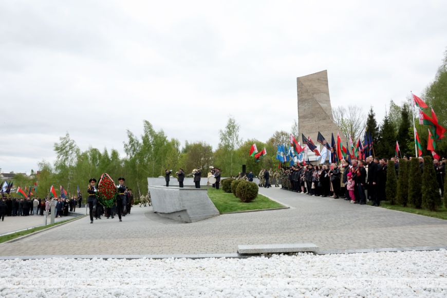Встретить и поддержать участников масштабной акции, почтить память тех, кто в годы Великой Отечественной войны отдал жизни за мирное небо над современной Беларусью, приехали сотрудники органов внутренних дел, ветераны, кадеты, лицеисты и курсанты профильных учебных заведений, воспитанники военно-патриотических клубов, семьи и близкие правоохранителей. Они возложили цветы и венки к братской могиле, склонили головы в минуте молчания. После этого на мемориале в торжественной обстановке были вручены очередные специальные и воинские звания. Гости также заложили капсулу с посланием потомкам, которую вскроют в 2045 году - в год столетия Великой Победы. Заветы будущим поколениям - хранить правдивую историю о Великой Отечественной войне и беречь мирное белорусское небо.-0-