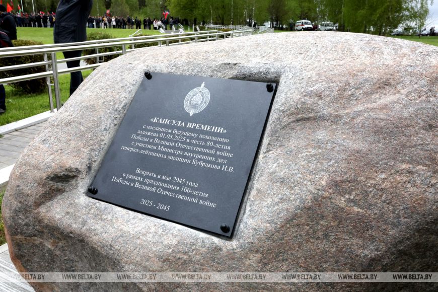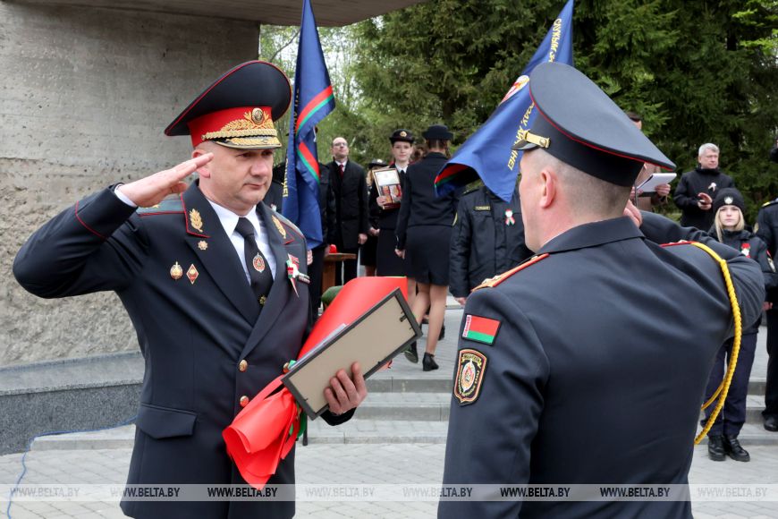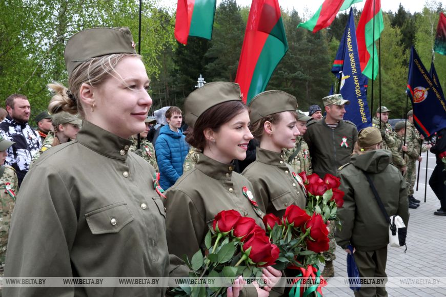 Встретить и поддержать участников масштабной акции, почтить память тех, кто в годы Великой Отечественной войны отдал жизни за мирное небо над современной Беларусью, приехали сотрудники органов внутренних дел, ветераны, кадеты, лицеисты и курсанты профильных учебных заведений, воспитанники военно-патриотических клубов, семьи и близкие правоохранителей. Они возложили цветы и венки к братской могиле, склонили головы в минуте молчания. После этого на мемориале в торжественной обстановке были вручены очередные специальные и воинские звания. Гости также заложили капсулу с посланием потомкам, которую вскроют в 2045 году - в год столетия Великой Победы. Заветы будущим поколениям - хранить правдивую историю о Великой Отечественной войне и беречь мирное белорусское небо.-0-