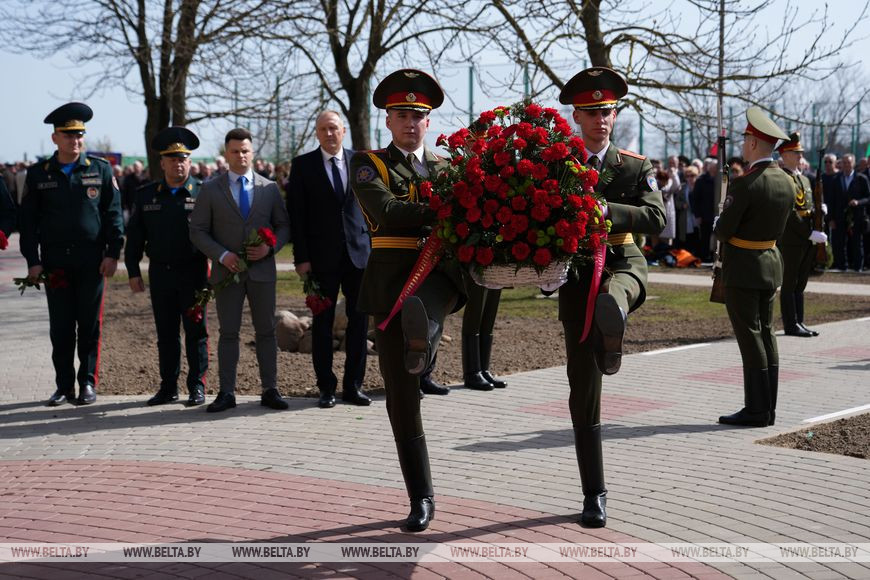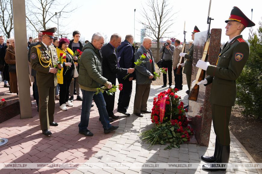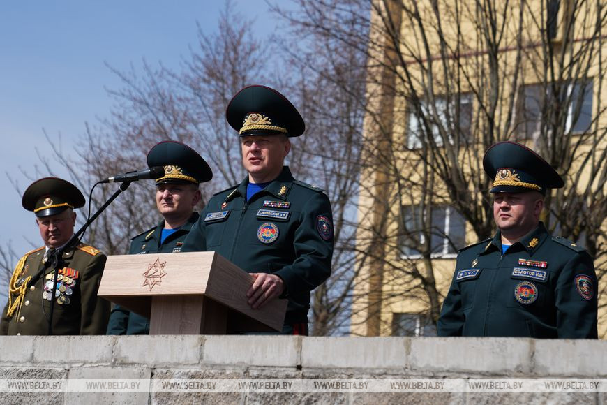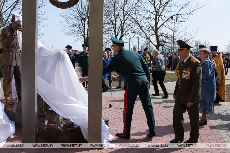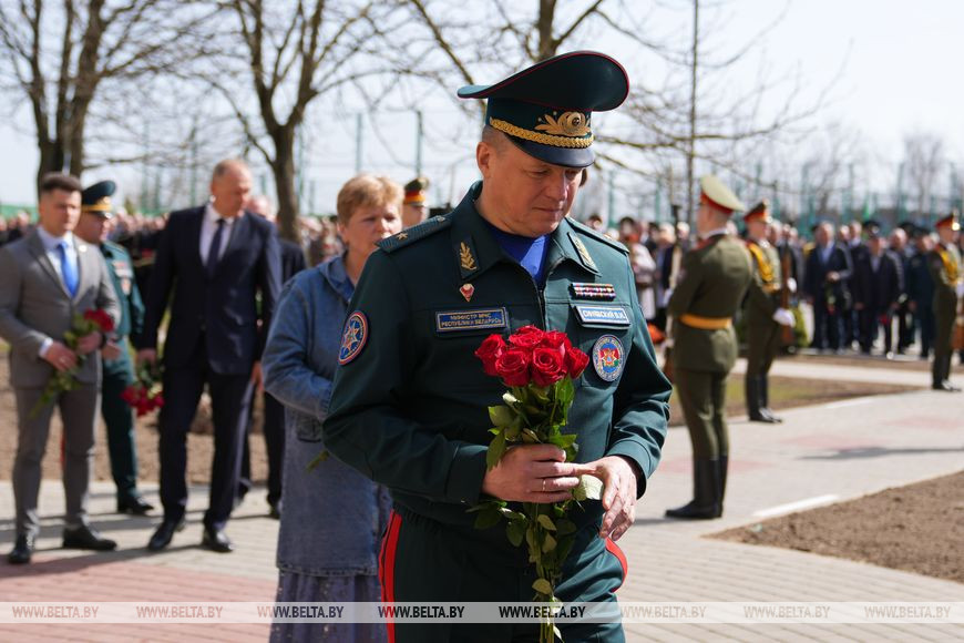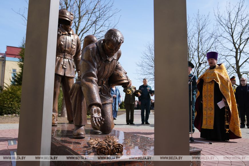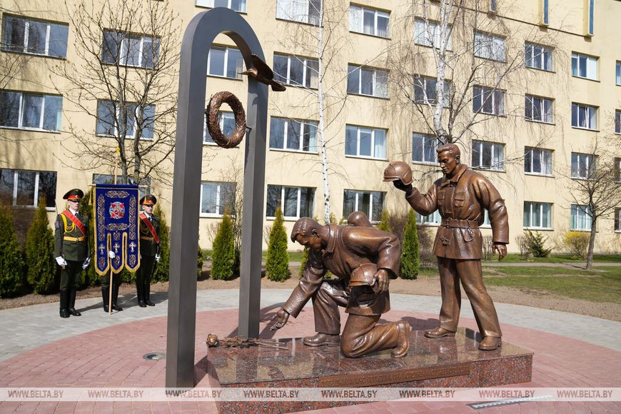 "В Год исторической памяти мы не могли этого не сделать. Уже в прошлом году началась серьезная, кропотливая работа по поиску документального подтверждения фактов гибели наших коллег, товарищей. Документально подтверждено, что всего погибло 48 человек во время выполнения служебного долга. В Министерстве по чрезвычайным ситуациям возникла идея создания памятника, чтобы почтить память всех погибших. Средства собирали все поколения белорусских спасателей, молодые курсанты, офицеры, сотрудники МЧС, ветераны. Монументально-декоративную скульптуру установили в Университете гражданской защиты МЧС. Место выбрано неслучайно - именно здесь проходят обучение наши будущие белорусские спасатели, которые завтра поступят на службу в органы подразделений по чрезвычайным ситуациям. Конечно, они должны помнить о героях, которые, спасая жизни других, отдали свои", - рассказал Вадим Синявский.