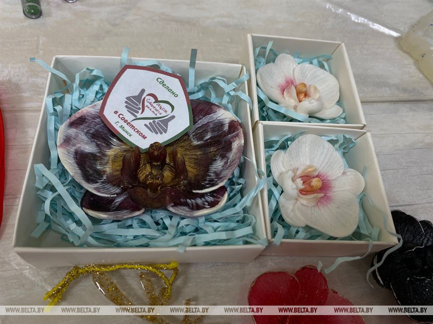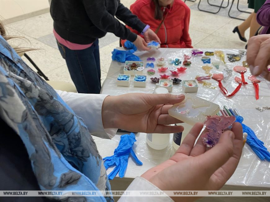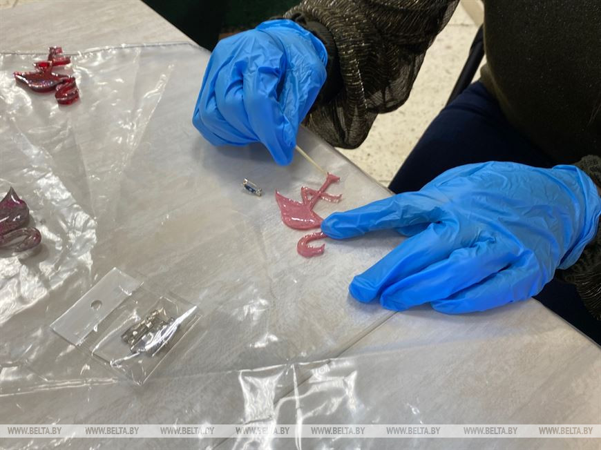 Отделение социальной реабилитации, абилитации инвалидов Советского района одно из первых ввело в занятия очень сложную технику - литье из эпоксидной смолы. Техника вызывает особый интерес у группы. Здесь создаются сказочные драконы, гордые фламинго и нежные орхидеи. Каждое изделие получает от посетителя отделения свое имя. Сегодня, например, ребята изготовили пару фламинго и назвали их Сергей и Прекрасная Наталья. Эти изделия также станут подарками для пожилых, оставшихся в одиночестве.