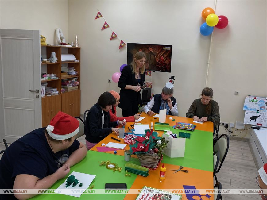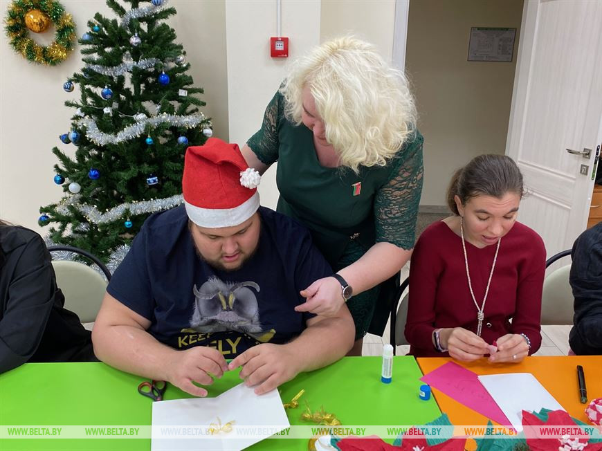 В Новый год каждый человек хочет получить внимание и тепло, особенно одинокие пожилые люди. В преддверии праздника территориальные центры социального обслуживания по всей стране организовали мастерские по подготовке новогодних сувениров и украшений. Отделение социальной реабилитации, абилитации инвалидов ТЦСОНа Советского района Минска тоже открыло свою мастерскую счастья. Что создают посетители отделения, узнала корреспондент БЕЛТА.