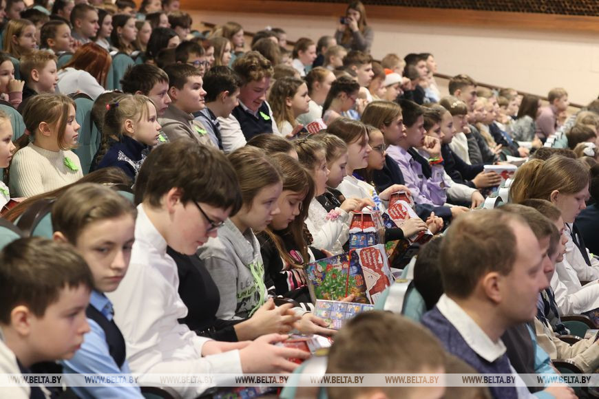 28 декабря, Могилев /Корр. БЕЛТА/. Около 700 ребят со всего региона собрал областной праздник в Могилеве. Сказочные персонажи, песни, хороводы и звонкий смех - настоящую сказку организовали для учащихся и воспитанников школ-интернатов, которые добились высоких результатов в учебе, творчестве и спорте, передает корреспондент БЕЛТА.