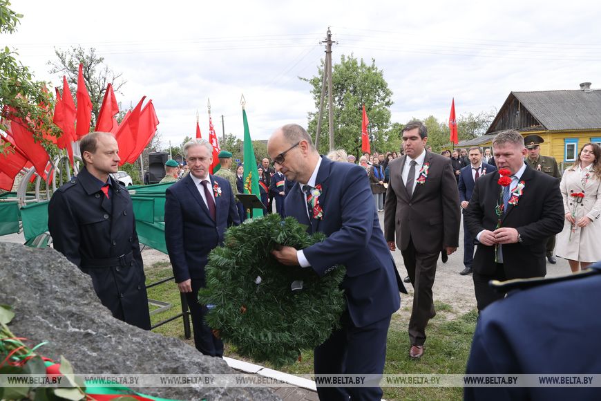 Председатель Ельского райисполкома Виктор Замостик приветствовал гостей в этом знаковом месте. "Весь мир в неоплатном долгу перед подвигом советского народа, который заплатил за победу неимоверно высокую цену - жизни 30 млн людей, те, кто погиб в бою или скончался от ран, кто был замучен в фашистских застенках или лагерях, кто заживо сожжен, как в Хатыни, или расстрелян карателями, кто умер от голода и холода в блокадном Ленинграде или от непосильного труда в глубоком тылу", - напомнил он о высокой цене Победы.