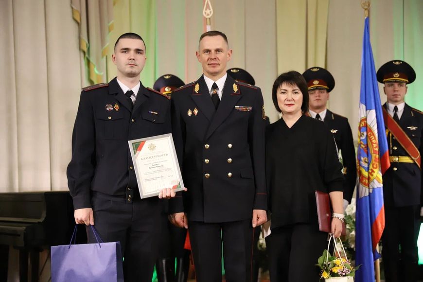 Инспектор уголовно-исполнительной инспекции Ленинского РУВД Валентин Гончаров и его мама Нина Гончарова также в числе награждаемых сегодня. Молодой инспектор работает в милиции с 2021 года, куда пришел после окончания Академии МВД. Его работа заключается в контроле за осужденными и проведении с ними профилактических бесед. Валентин Гончаров считает, что для того чтобы стать хорошим правоохранителем, лучшим в своем деле, нужно быть ответственным человеком, любить свое дело и стараться выполнять свои служебные обязанности. "Я с детства хотел быть сотрудником органов внутренних дел, целенаправленно учился и поступил в академию. У меня есть цель - служить Родине и защищать ее от преступников", - добавил молодой милиционер.