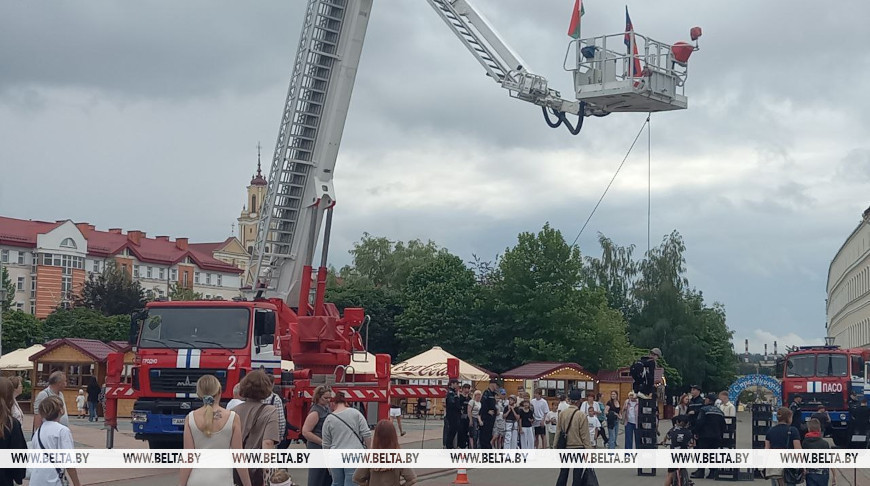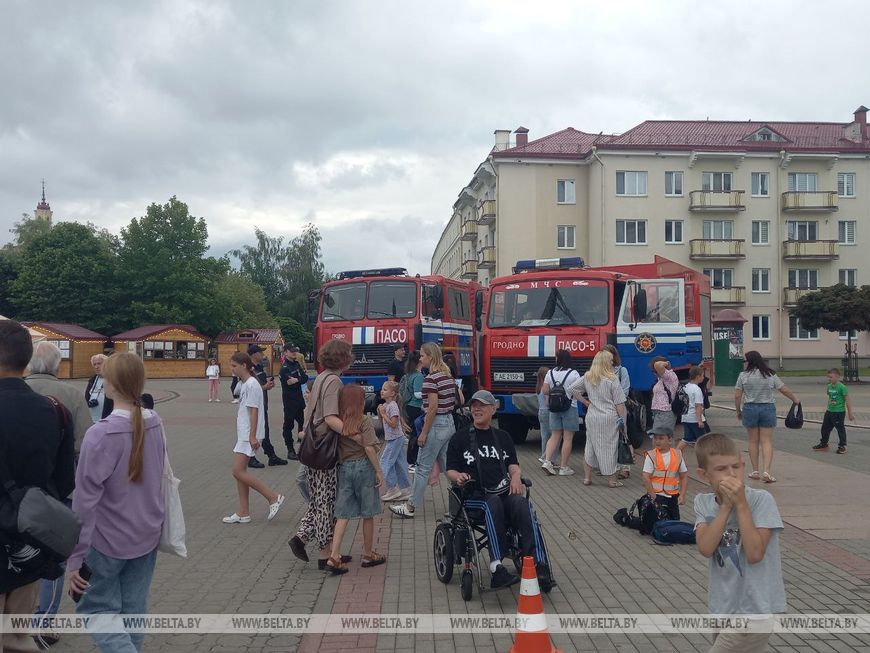 Праздник проходит с 14.00 до 16.00 часов на площади Советской в центре города, где собрались юные гродненцы и их родители. Для них представили выставку техники МЧС, которую, как это традиционно бывает, можно не только посмотреть. Ребята активно забираются в кабины служебных автомобилей, пожарных машин, осваивают средства пожаротушения.