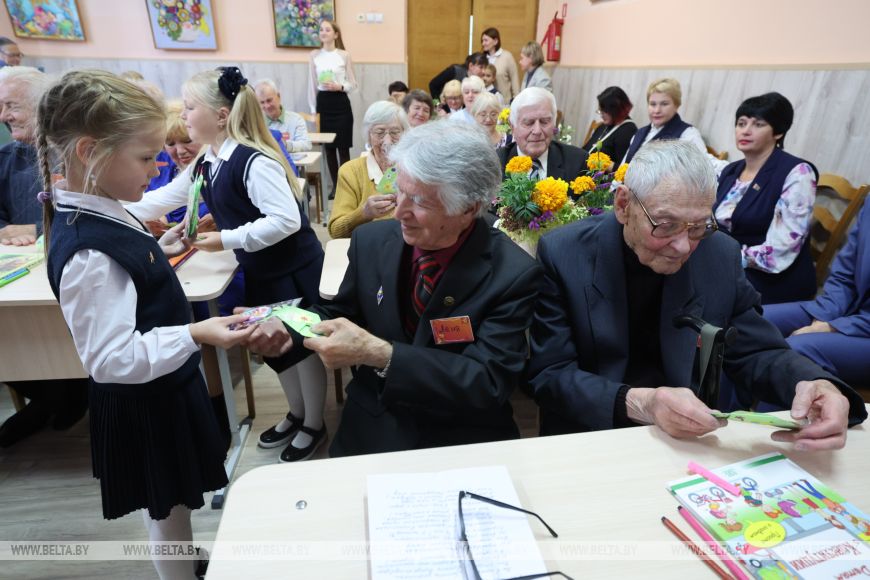 Витебские пенсионеры, ветераны, бывшие малолетние узники снова услышали школьный звонок и сели за парты. Их не только поздравили с предстоящим праздником, но и провели для них занятие, совсем как в детстве - для "мальчиков" и "девочек" устроили контрольную, предоставили возможность проявить свои таланты. Также они окунулись в приятные воспоминания. Любимый учитель и предмет, первая подростковая любовь, двойки в дневнике и шпаргалки, самые смелые поступки и мечты о будущем, счастливые моменты, когда бежишь купаться на речку в знойный летний день, - каждый "ученик" побывал в далекой стране под названием "Детство". Участники мероприятия смогли насладиться и выступлениями школьников, подготовивших творческие номера. А на память об "Уроке жизни" гости учреждения образования оставили теплые и душевные пожелания подрастающему поколению - быть смелыми, идти к своей цели, не сомневаться в своих силах и найти истинное призвание.