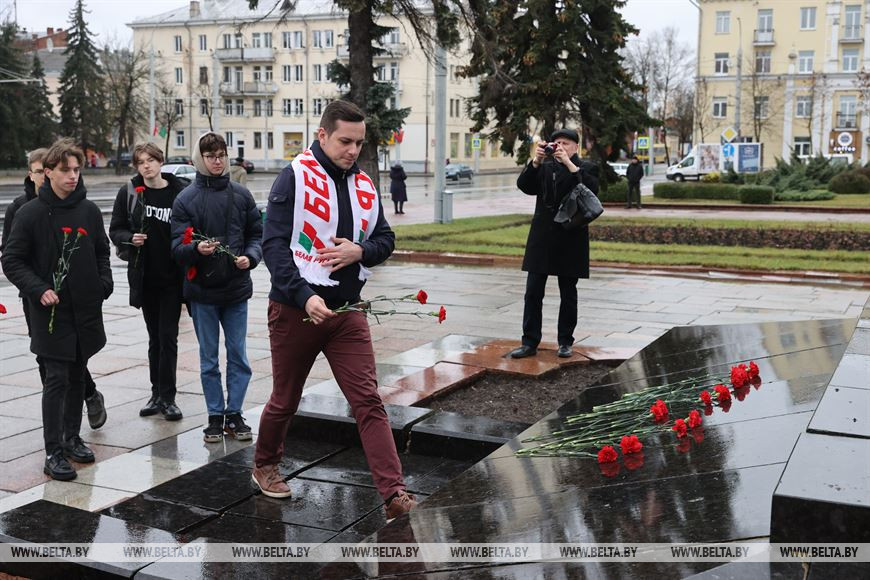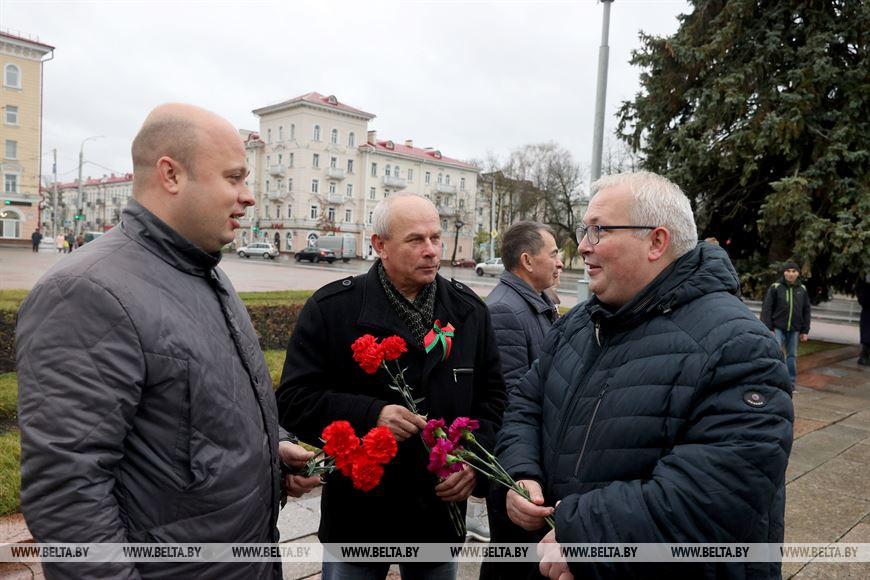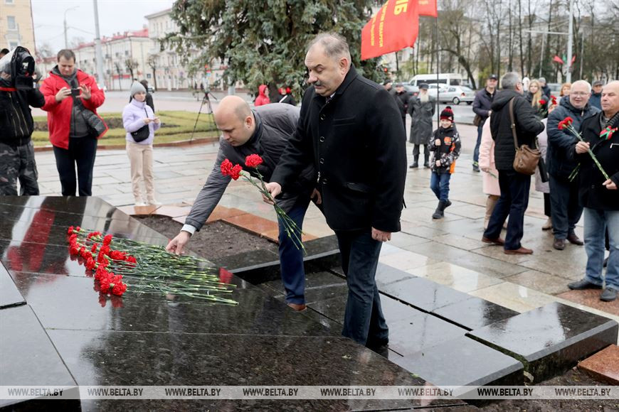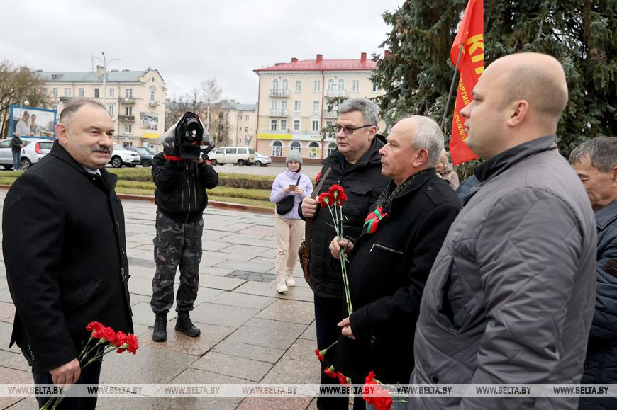 7 ноября, Витебск /Алеся Пушнякова - БЕЛТА/. Представители общественности Витебска, семьи и молодежь возложили цветы к памятнику В.И. Ленина в честь Дня Октябрьской революции, передает корреспондент БЕЛТА.