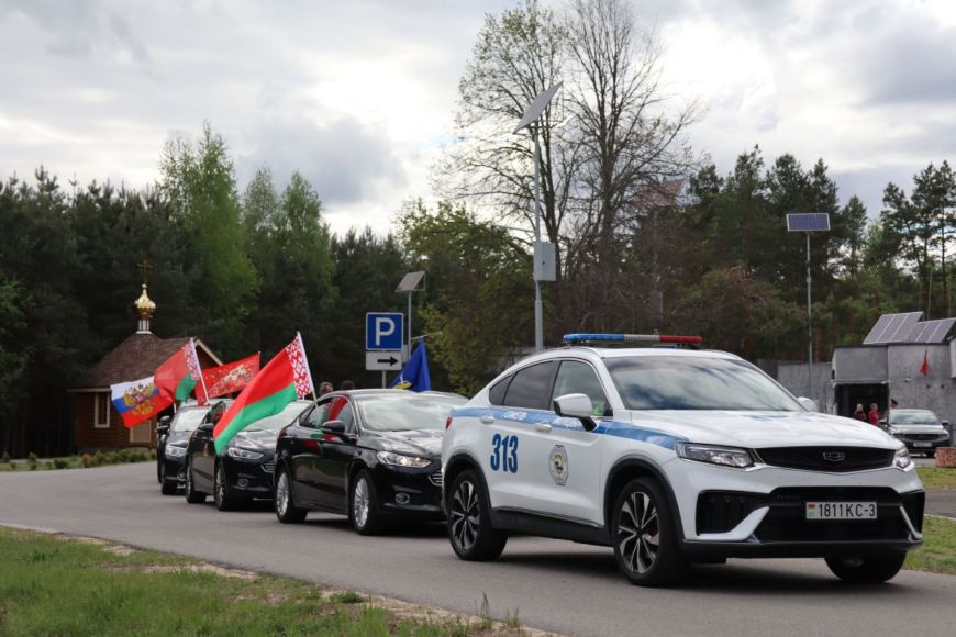 Во второй половине дня участники автопробега прибыли в юго-восточный регион страны. К автопробегу присоединились сотрудники центрального аппарата Следственного комитета Беларуси. Местом притяжения российских и белорусских патриотов стал мемориальный комплекс "Ола" в Светлогорском районе, воздвигнутый на территории сожженной в январе 1944 года одноименной деревни. В страшных муках от зверств немецких карателей здесь погибли 1758 мирных жителей Олы и соседних населенных пунктов, которые прятались в деревенской глуши от фашистов. В числе безвинно убиенных - 950 детей.