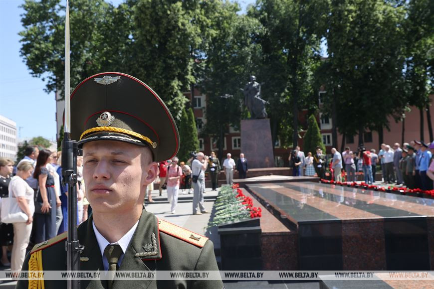"Ровно 80 лет назад в этот самый день на нашу землю пришла страшная беда: без объявления войны немецкие войска вероломно вторглись на нашу территорию. Война безжалостно уничтожила все светлые личные мечты, разрушила планы на дальнейшее созидание, украла детство, унесла миллионы жизней", - сказал Геннадий Соловей. Он обратил внимание: война показала и пример беспрецедентного героизма, всепоглощающего патриотизма. "Молодые люди приписывали себе годы, чтобы уйти на фронт. Девушки осваивали профессии связисток, регулировщиц, снайперов, летчиц, зенитчиц. Воевала вся страна: от сыновей полка и пионеров-героев до глубоких стариков, способных еще держать в руках оружие", - отметил председатель облисполкома.