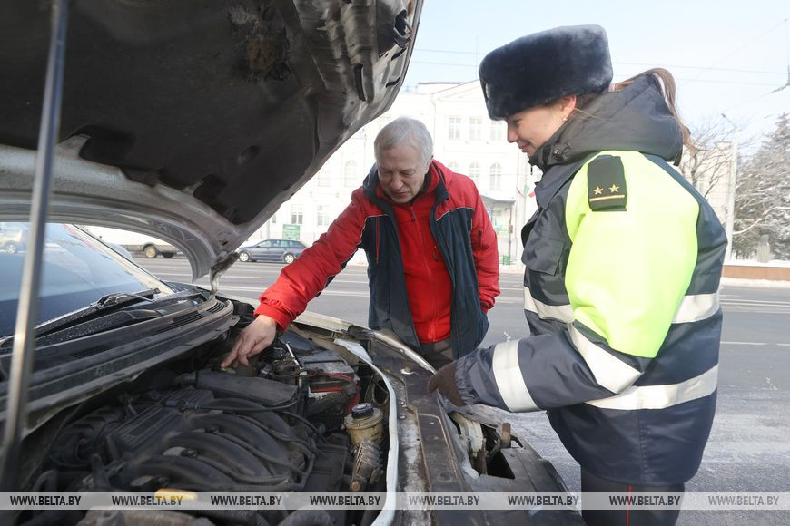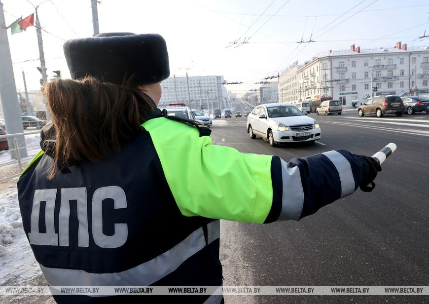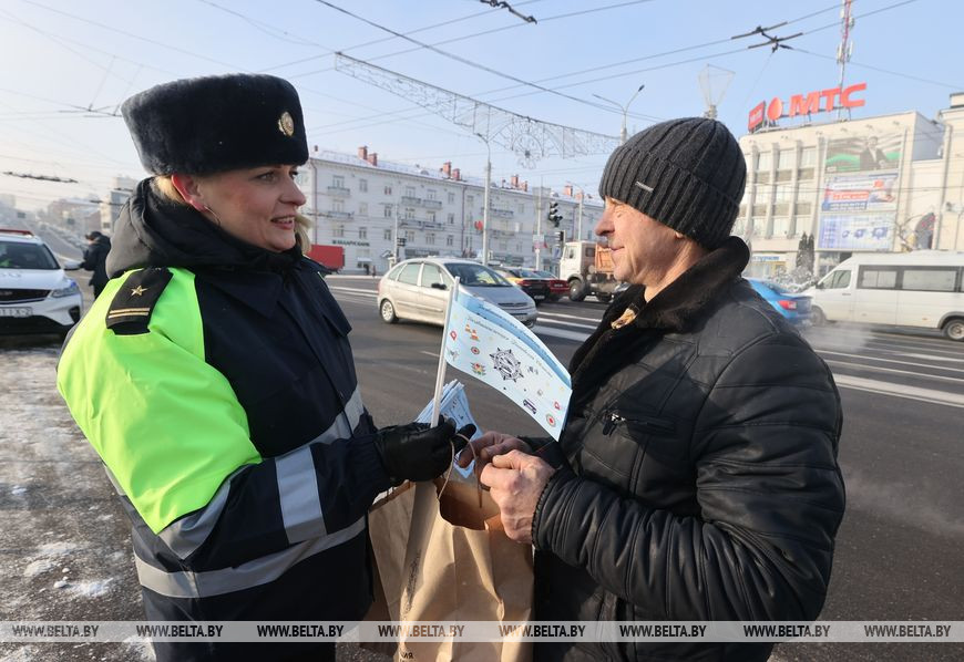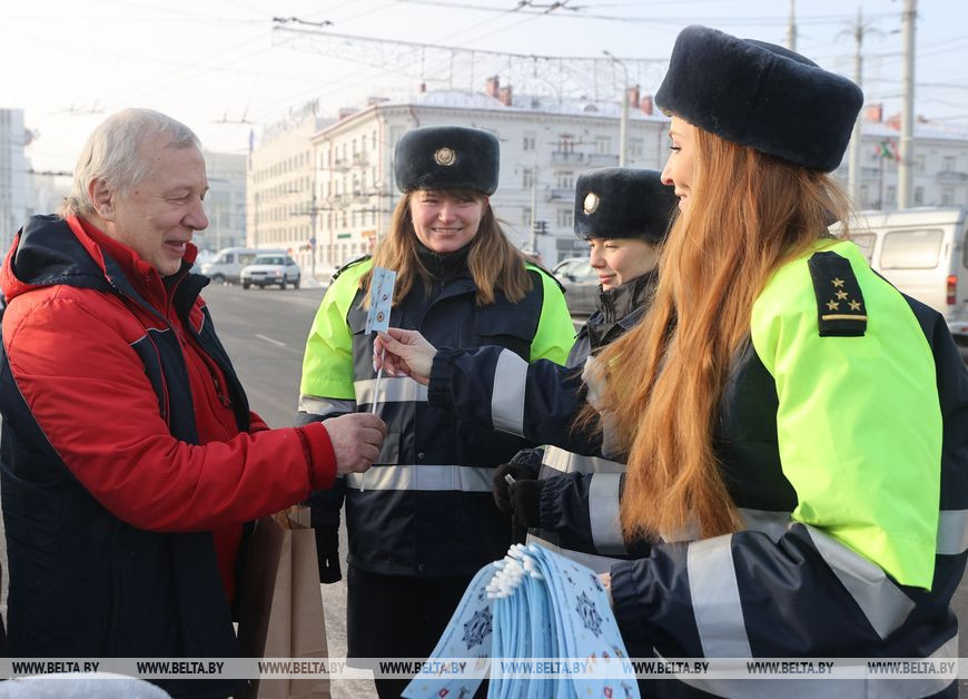 23 февраля, Витебск /Алеся Пушнякова - БЕЛТА/. Сотрудницы ГАИ Витебской области поздравили водителей-мужчин с Днем защитников Отечества, передает корреспондент БЕЛТА.