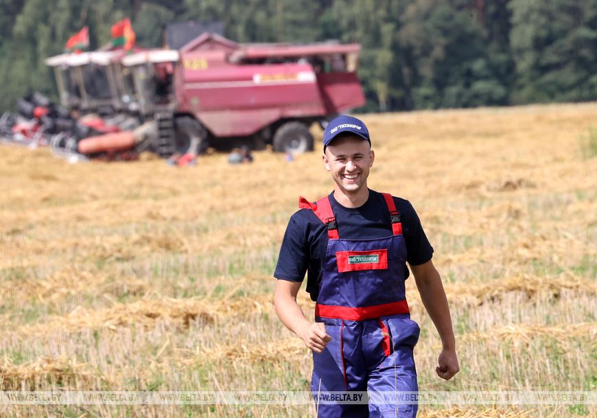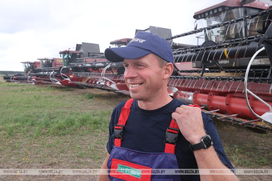 "А у меня сыновья уже взрослые, сами могут покосить", - улыбается, продолжая тему, Андрей, который на уборочной уже в третий раз. "Предложил свои услуги по перевозке соломы, а мне вручили комбайн. Постепенно во всем разобрался. Теперь разгорелся и спортивный интерес, есть такой элемент соревнования между экипажами. Концентрируешься на работе - день проходит очень быстро. У нас в "Тихиничах" - все тысячники", - рассказывает он о своей истории пути в хозяйство.