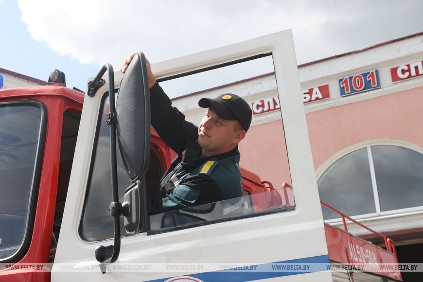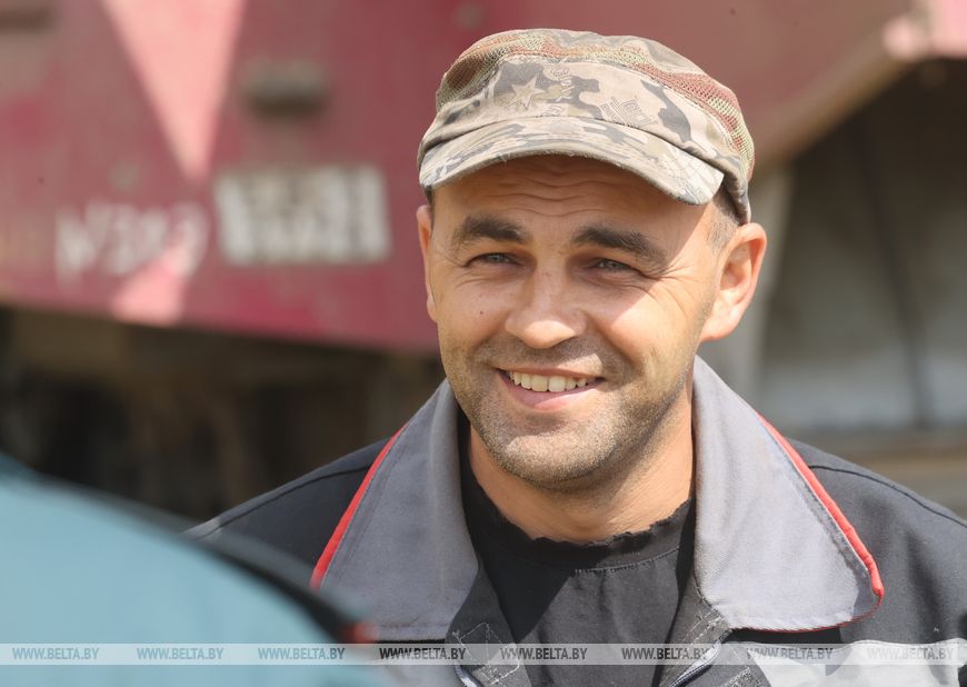 Алексей Володькин в АПК - помощник комбайнера, в МЧС - водитель в пожарной части №1 Рогачева. На его счету это уже третья уборочная кампания в ОАО "Тихиничи". Опыт дает уверенность в своих силах. "Нет ничего сложного, важно разобраться во всем и понимать. Узлы и механизмы должны работать исправно - в этом наша задача", - поясняет он.