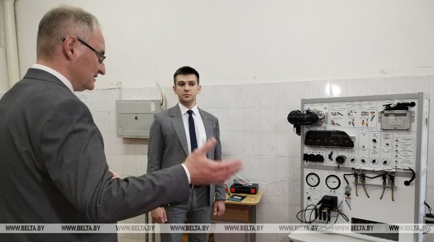 "В этом квартале мы планируем закупить оборудование по изучению электромобилей. Добавились в базу два новых станка, один из них - подарок от Минского завода шестерен. Хочу отметить, что в образовательном процессе наших учащихся более 50% - это производственное обучение, а на уровне профессионально-технического образования - 60-70%. Работаем мы с МТЗ, МАЗом, Минским заводом шестерен, Минский моторным заводом, заводом "Волат", для которых готовим кадры", - рассказал Юрий Золотковский.