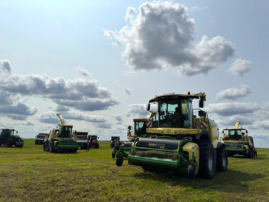 – Важно провести первый укос со строжайшим соблюдением технологии, чтобы растения не растеряли накопленные питательные вещества, необходимые для кормовых целей. Это позволяет получать нам и хорошие надои, и хорошие привесы, – отмечает Владимир Хроленко, который руководит сельхозпредприятием более 30 лет и уж точно знает, о чем говорит. – Объем заготовки сенажа для нашего внушительного поголовья – порядка 100 тыс. Также готовим травяные гранулы, в которых содержится на порядок больше белка и каротина, необходимых для рациона животных.