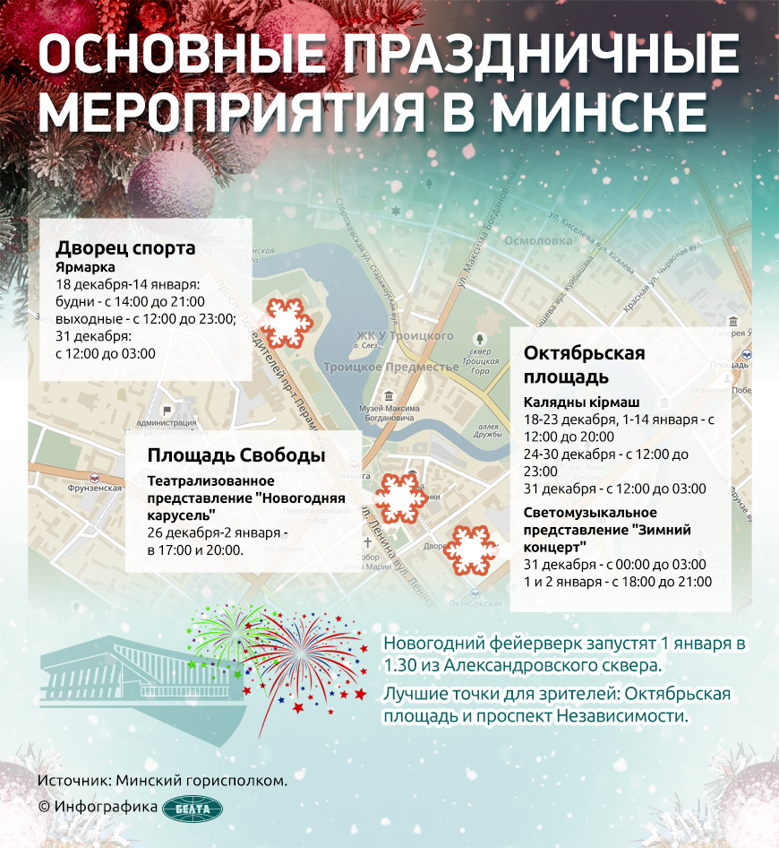До этого 24 декабря пройдет праздник для ребят помладше - во Дворце Республики, 23 декабря и 28 декабря - программа для детей в Белгосцирке "В поисках волшебства" и другие мероприятия.-0-