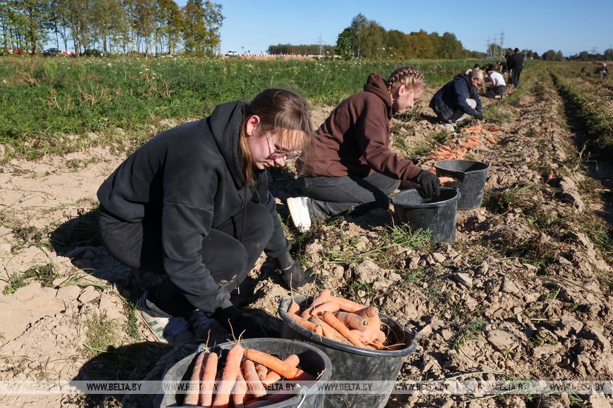 26 сентября, Могилев /Корр. БЕЛТА/. В Могилевском районе активными темпами ведется уборка моркови. Помощь в сельхозработах предприятиям АПК оказывают студенческие отряды: только на полях ОАО "Фирма "Кадино" трудятся 40 учащихся Могилевского государственного экономического промышленно-технического колледжа. Ежедневно ребята убирают около 10 т овощей.-0-