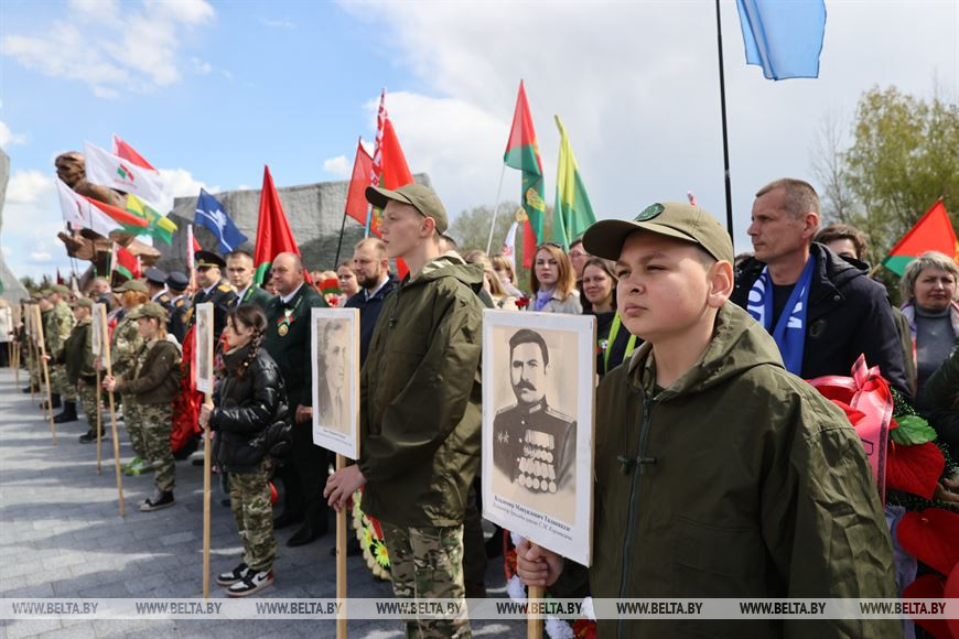 Отдать дань уважения и памяти подвигу советского народа, воинам, которые приближали Победу в Великой Отечественной войне, отстояли свободу и независимость нашей Родины ценой своей жизни, собрались около 2 тыс. человек. Здесь руководство области, делегации районов и городов северного региона, представители трудовых коллективов, общественных организаций, предприятий, молодежь и школьники. Эмоции в этот праздник - гордость, боль и радость за Победу, отметил председатель облисполкома Александр Субботин.