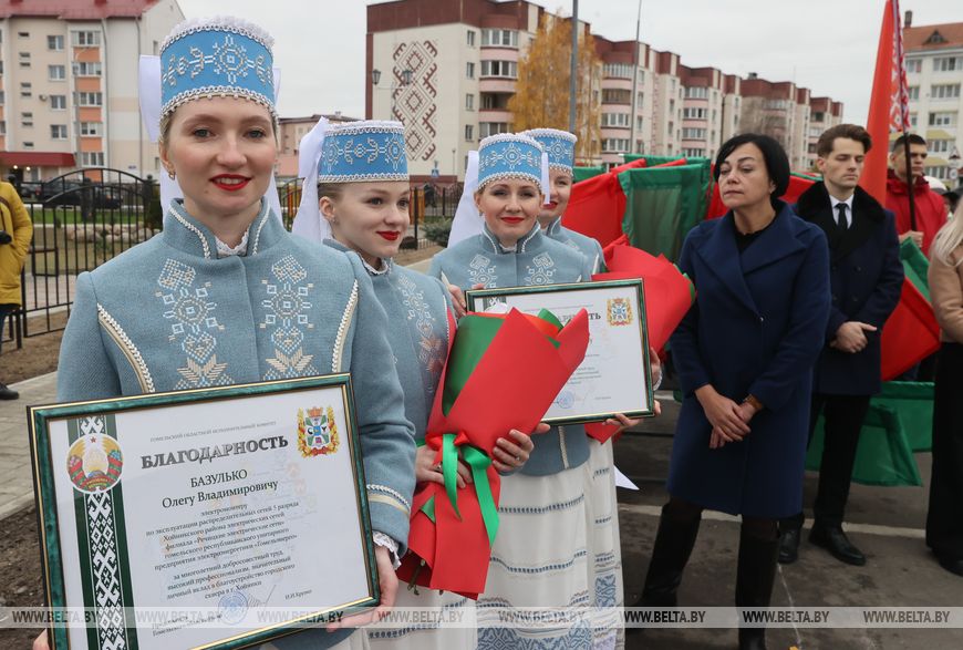 Генеральный директор РУП "Гомельэнерго" Михаил Коваленко обратил внимание на символичность того, что обновленный сквер, который стал одним из подарков для местных жителей в преддверии Дня Октябрьской революции, расположен по ул. 70 лет Октября райцентра.