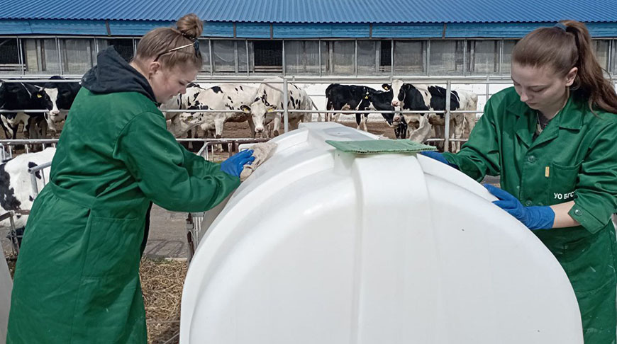 Один из студенческих отрядов трудится на ферме Белорусской государственной сельскохозяйственной академии. Здесь после пар работают 10 человек - парни и девушки, которые в будущем станут дипломированными специалистами в области животноводства и рыбоводства. Работы у ребят хватает: в их зону ответственности входит почти 400 коров и не меньше 40 телят. Как рассказала командир сельскохозяйственного студенческого отряда Анастасия Воронова, студотряды - это возможность не только заработать, но и внести свой вклад в развитие сельского хозяйства, а также применить на практике уже полученные знания.