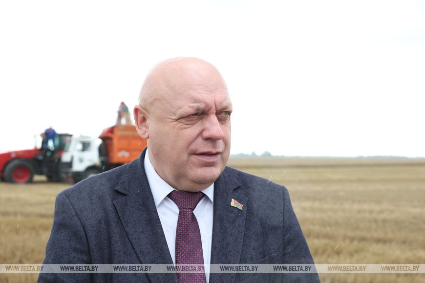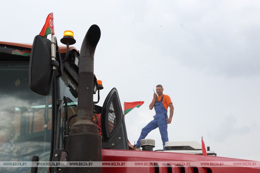 "Мы довольны результатом жатвы. К сожалению, небесная канцелярия пишет свои законы, но вчерашний день очень порадовал. Мы убрали почти 20 тыс. га и очень неплохо добавили по рапсу. Сегодня мы видим рост его урожайности. Убрали 40%, подходим вплотную к цифре 30 ц/га, как нам ставил задачу глава государства. Лучшие поля еще впереди. Уборка ведется. Дождь сегодня только в Клецке, по всей остальной части территории у нас хорошая погода", - пояснил Василий Сысоев.