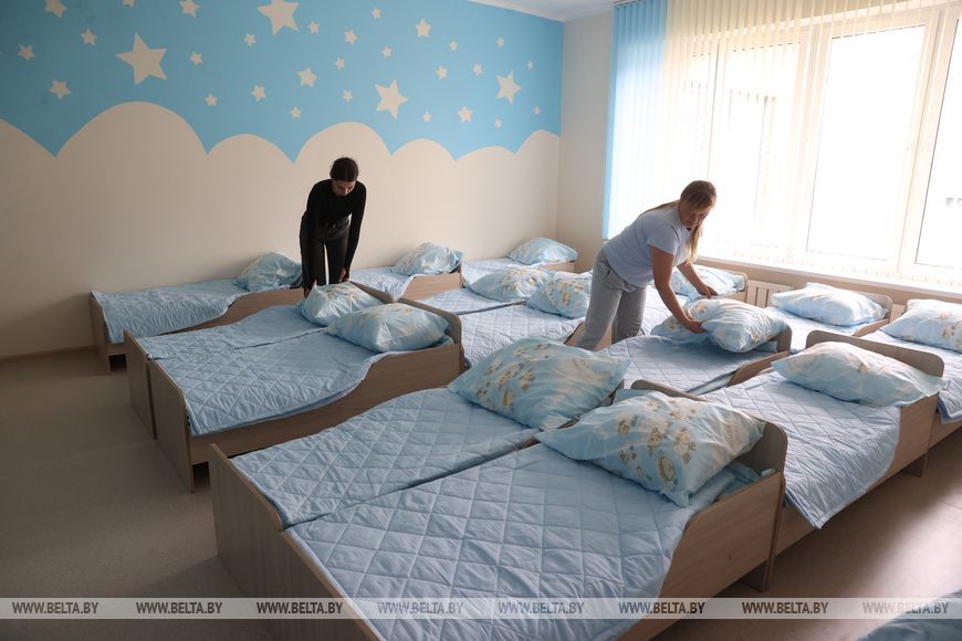 Выпускница Пинского педагогического колледжа Ангелина Козич на работу в начальную школу №1 пришла по распределению. Молодая воспитательница будет трудиться в ясельной группе. Вместе с коллегой она занимается последними приготовлениями перед приходом детей. "Тут очень много игрушек (все они белорусского производства), мягкие модули, бассейн. Детям будет интересно. Мы сделали разные уголки: больницу, парикмахерскую, кухню и другие. Есть также патриотический уголок, чтобы сызмальства детки узнавали о Беларуси", - подчеркнула молодой специалист. Она добавила, что в группе есть телевизор и другое интерактивное оборудование для обучения дошкольников.