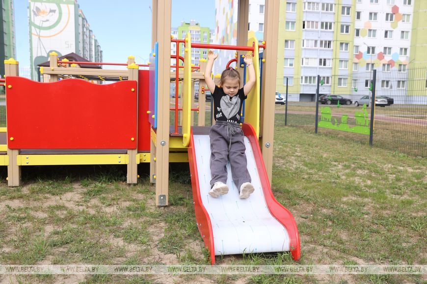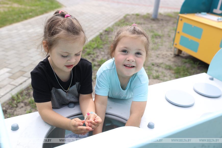 Жители микрорайона Жемчужный с нетерпением ждут открытия начальной школы №1 Пинска. На их глазах начались строительные работы, появился фундамент, затем первый и второй этажи здания. Конечно, картинка "было/стало" - небо и земля. Детвора уже сейчас готова все дни проводить на территории, заполненной игровыми и спортивными комплексами. Опробовали их и четырехлетние близняшки Яна и Даша Протасюк.
