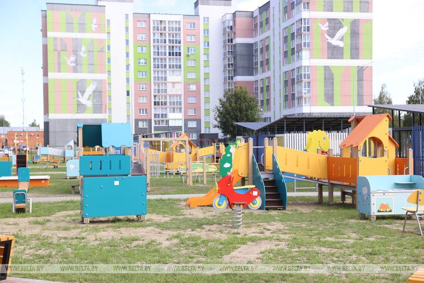 "У нас дом рядом. Мы пока делали ремонт, а 1 сентября заселяемся в квартиру и идем в детский сад. Контраст большой, поскольку водили детей в сад в Оснежицы. Чтобы добраться, нужно 20-30 минут. Сейчас - в шаговой доступности, очень удобно. Даже представить не могла: вышел из подъезда, сделал пару шагов - и дети в саду. Я в восхищении, насколько все классно продумано для детей. Такого уровня сада я еще не видела", - призналась мама девочек Ирина.Символ нового учреждения образования - ласточка. Можно предположить, что она символизирует стремление ввысь, к новым знаниям. "Для Пинска это первая такая начальная школа, которая объединена с детским садом. У нас будет более 200 дошкольников, которые будут заниматься в восьми группах. Сформировано 12 классов начальной школы. Это очень большой плюс для Жемчужного, потому что микрорайон растущий", - отметила директор начальной школы №1 Пинска Эрика Кулеш.
