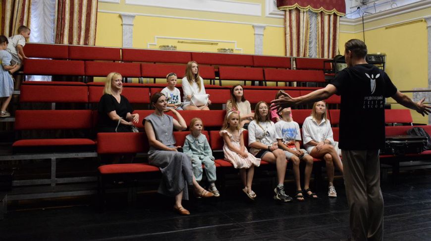"4 сентября мы открыли 45-й театральный сезон спектаклем "Чайка" в постановке Олега Жюгжды, а предварительно устроили перформанс на открытом воздухе, - рассказала директор театра кукол Мария Шабашова. - Сегодня пригласили публику заглянуть в наше закулисье. Каждые полчаса принимаем экскурсии. Гости видят эпизоды репетиций спектаклей "Чайка" и "Вверх тормашками" на большой и малой сцене. Последний - постановка для детей с живой музыкой, премьера его состоится в октябре. Ведущая актриса Людмила Павловская знакомит с историей театра, а у нас - старейшая действующая сцена в Беларуси. Актер Иван Добрук представляет наши спектакли по пьесам Шекспира. В костюмерной показывают, как шьются костюмы для кукол, а самих сценических кукол можно увидеть в небольшом музейчике. Свою работу показывают гримеры, реквизиторы".