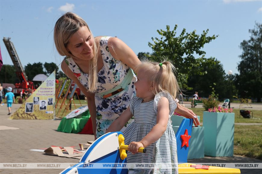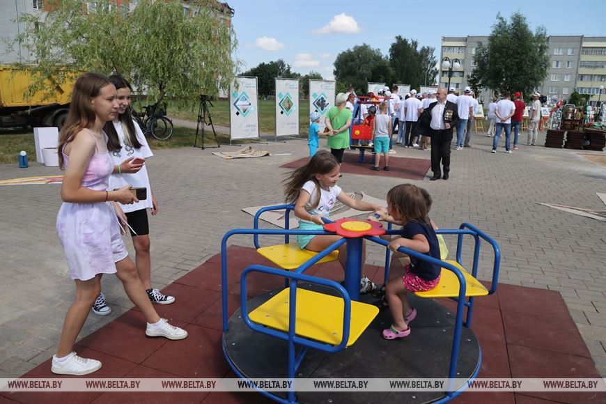 "Наша молодежь предложила провести акцию по обустройству детских площадок в райцентрах области и в Год исторической памяти сделать эти площадки тематическими. Площадка в Белыничах называется "Салют Победе", в Дрибинском районе "На высоте", в Кличевском - "Партизанская поляна". Каждый район придумал свою тематику и название, ведь несмотря на то, что область вроде бы небольшая, у каждого района есть история, которую можно рассказать и показать", - сказал председатель Могилевского облисполкома Анатолий Исаченко.
