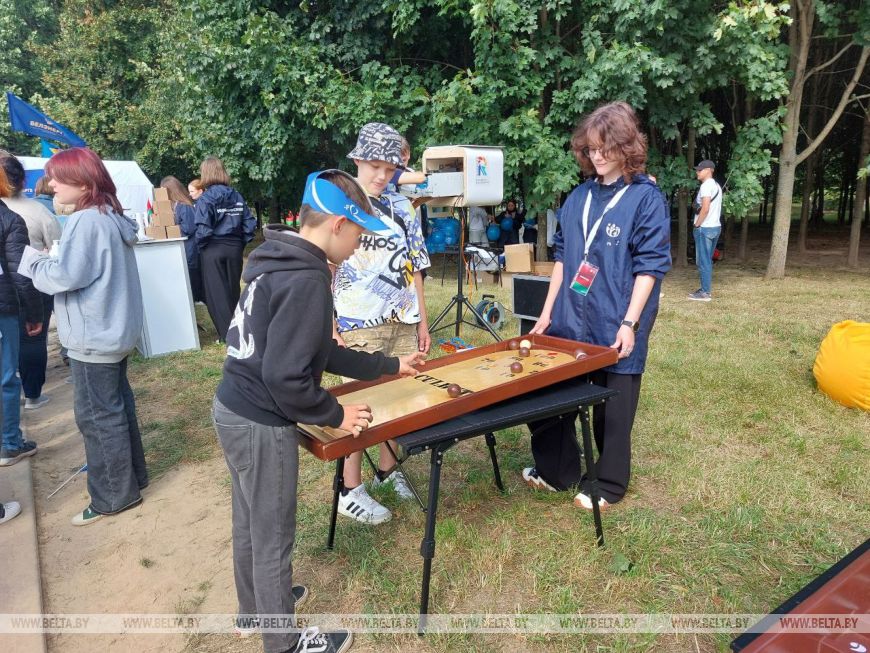 Пресс-секретарь Московской районной организации "Белая Русь" Екатерина Григорьева рассказала, что активисты организовали для детей игру, в которой нужно складывать фотопазлы с достопримечательностями города. "Но это не единственная локация от организации. В других местах можно сделать брелоки из кожи и поучаствовать в мастер-классах по росписи глиняных игрушек, бисероплетению, изготовлению цветов из проволоки и многих других", - поделилась она.