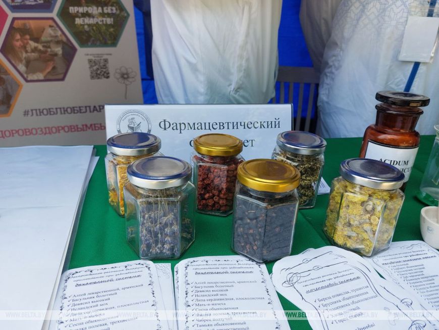 На стенде БГМУ предлагают угадать лекарственное и растительное сырье. "Для этого берем карточки, на которых написаны лекарственные сборы: для ЖКТ, центральной нервной системы. Можно ознакомиться с дисциплиной "аптечная технология": воспользоваться ступкой, пестиком", - рассказала студентка БГМУ Мария Чудиловская. Были игры на белорусском языке. Люди отгадывают перевод слов на русский. Привлекала минчан и мемо-игра на память с историческими местами страны