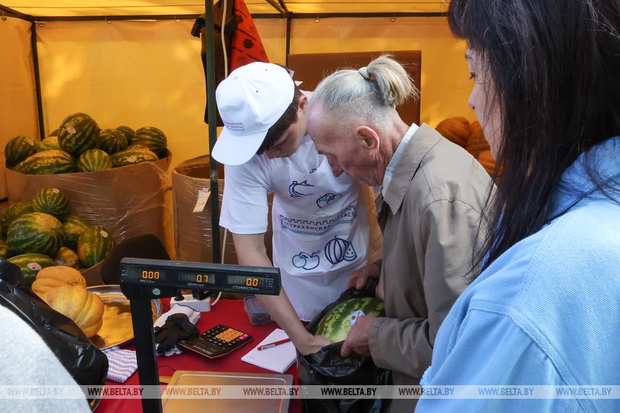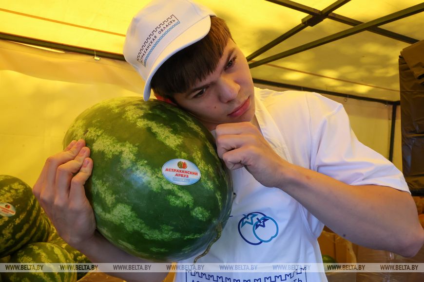 Как рассказал астраханский фермер Сахиб Вейсов, свою продукцию он вез в Могилев четырьмя фурами - одних только арбузов 16 тонн. А еще дыни, кабачки, баклажаны, томаты, перец, лук. Дорога заняла два с половиной дня, но фермер уверен, что весь этот путь проделал не зря - судя по интересу горожан, торговля будет что надо.