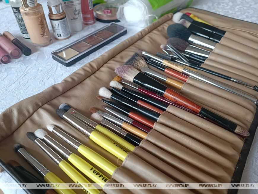 Мастера своего дела вызывали отдельный восторг. Глядя на них со стороны, начиная с подготовки к работе, только диву можно было даваться, как их компактные сундучки раскладывались во все стороны, превращаясь в мини-студии красоты удивительного содержания - от скрученных в трубочку "свитков" с косметическими кисточками до ярких палеток теней для век и множества баночек с декоративными и уходовыми средствами. Мазок кисточкой, другой, здесь провести карандашом, там растушевать - и легким движением руки дамы элегантного возраста сбрасывают лет 5-10.